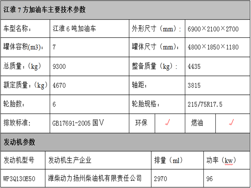 江淮7方加油車底盤配置